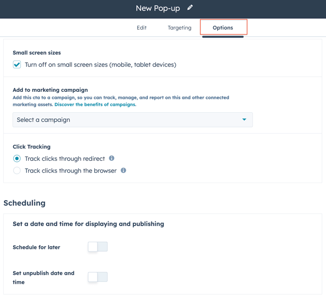 Before setting this up, don’t forget to name your CTA (e.g., “Testing CTA”).