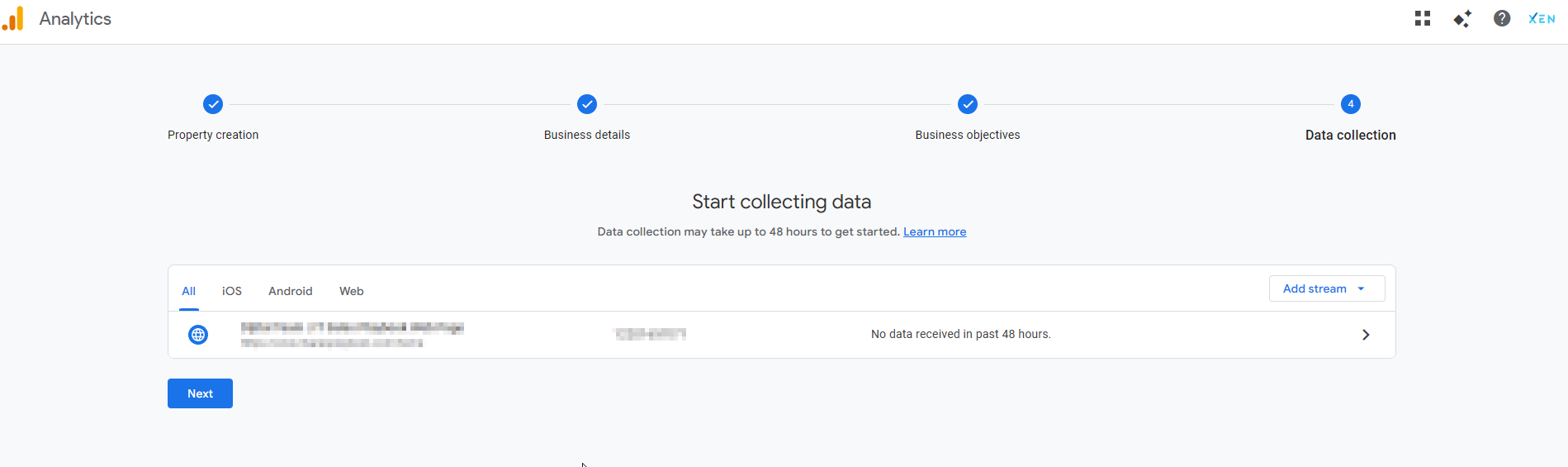 - Select your Web stream, or add a new Web stream if none exist